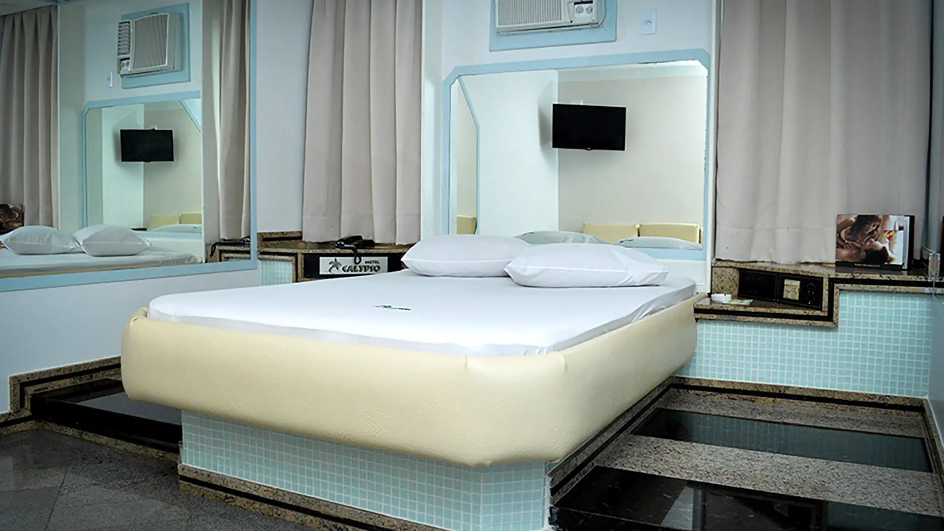 Suíte Luxo com atmosfera sofisticada e envolvente, ideal para momentos especiais. Conta com garagem privativa, saleta para refeições, sauna a vapor, hidromassagem e pista de dança estilo boate, além de sofá/divã para máximo conforto.
