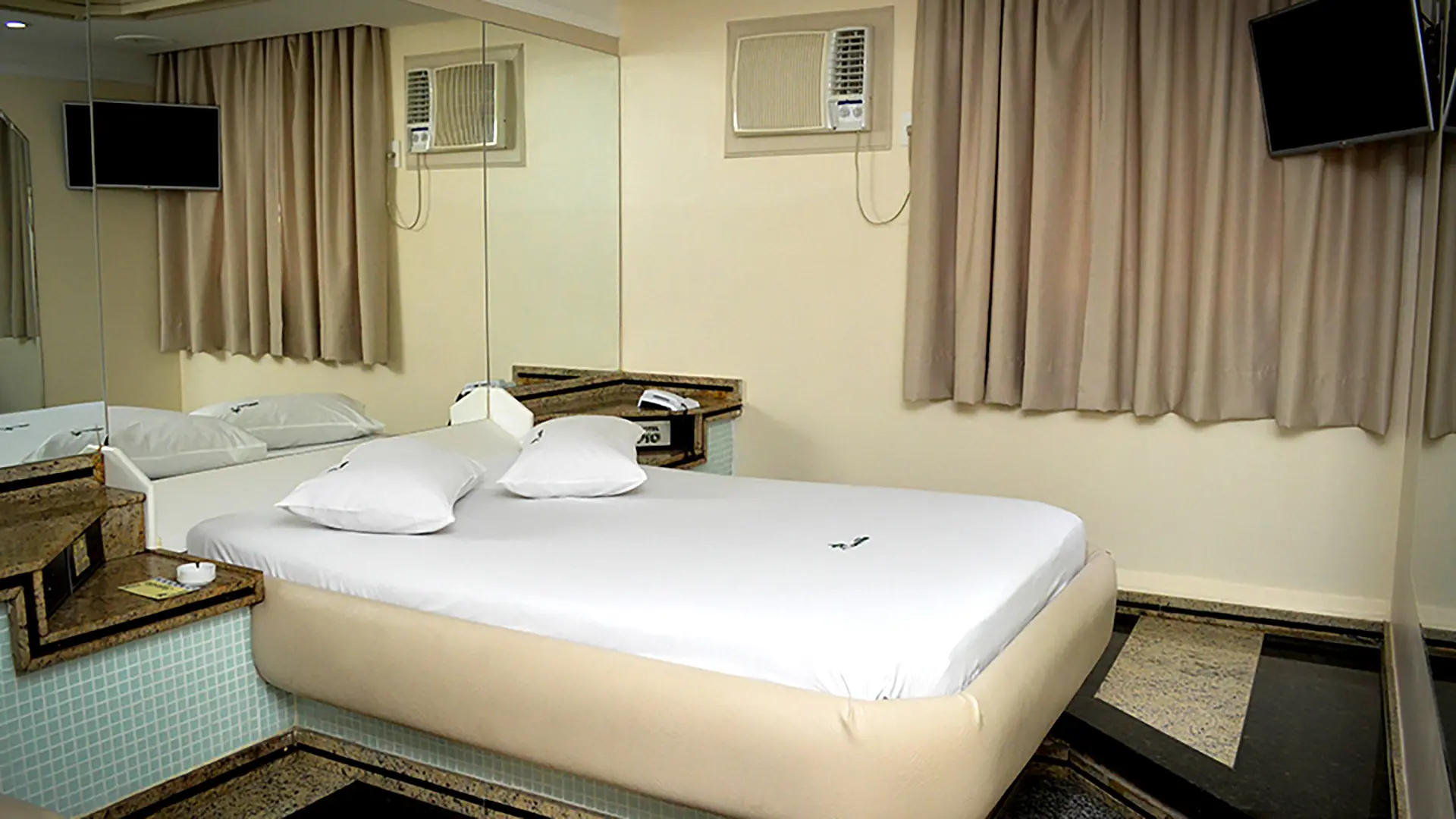 Suíte Executiva ideal para quem busca conforto e praticidade com elegância. Conta com garagem privativa, saleta para refeições, som ambiente, TV a cabo, frigobar e ar-condicionado, garantindo uma experiência completa e agradável.
